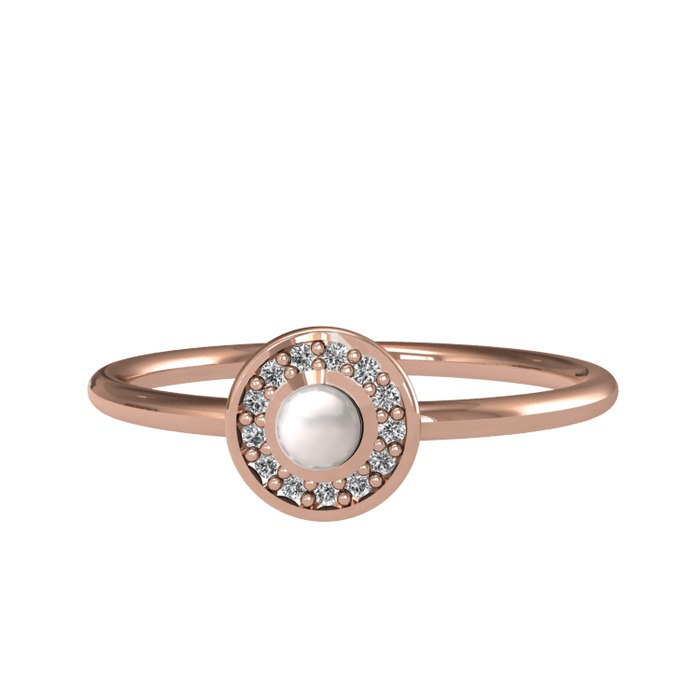 Inci ve beyaz zirkon 18 ayar rose altın yüzük