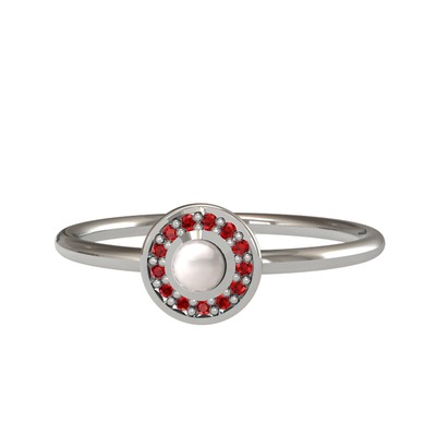 Inci ve garnet 14 ayar beyaz altın yüzük