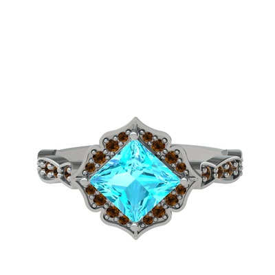 Akuamarin ve dumanlı kuvars 925 ayar gümüş yüzük