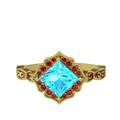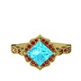 Akuamarin ve garnet 925 ayar altın kaplama gümüş yüzük