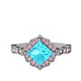 Akuamarin ve pembe kuvars 8 ayar beyaz altın yüzük