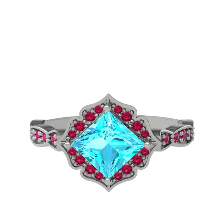 Akuamarin ve rodolit garnet 14 ayar beyaz altın yüzük