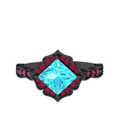 Akuamarin ve rodolit garnet 925 ayar siyah rodyum kaplama gümüş yüzük
