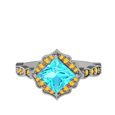 Akuamarin ve sitrin 925 ayar gümüş yüzük