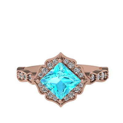 Akuamarin ve swarovski 8 ayar rose altın yüzük