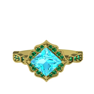 Akuamarin ve yeşil kuvars 8 ayar altın yüzük