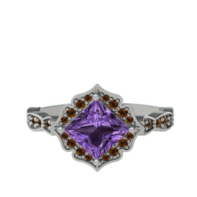 Ametist ve dumanlı kuvars 8 ayar beyaz altın yüzük