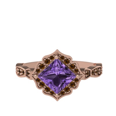 Ametist ve dumanlı kuvars 925 ayar rose altın kaplama gümüş yüzük