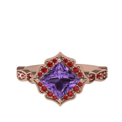 Ametist ve garnet 18 ayar rose altın yüzük