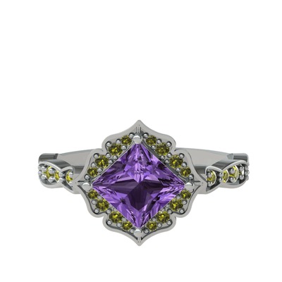 Ametist ve peridot 8 ayar beyaz altın yüzük