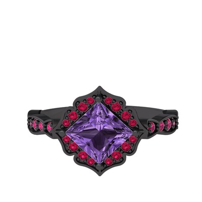 Ametist ve rodolit garnet 925 ayar siyah rodyum kaplama gümüş yüzük