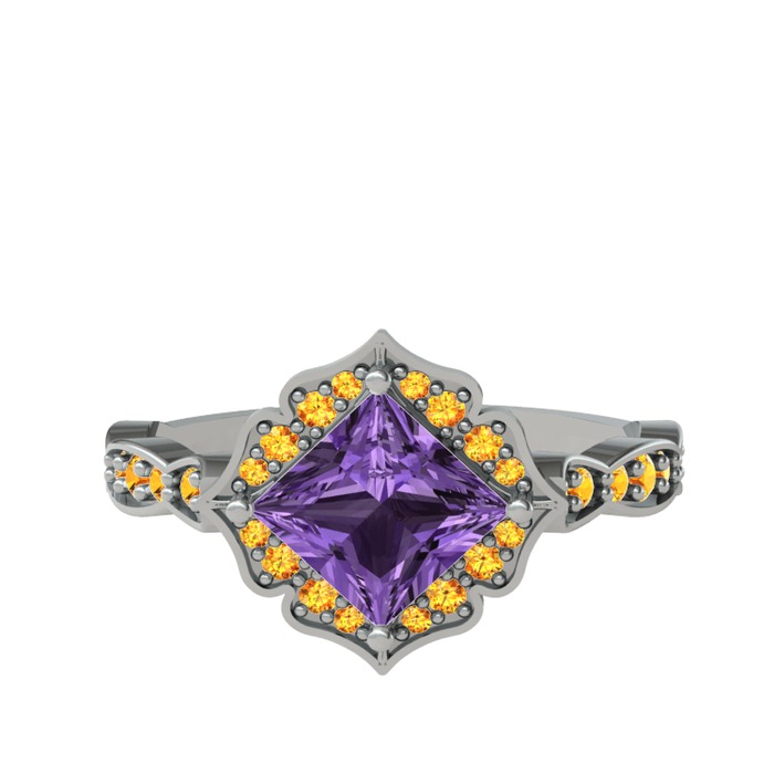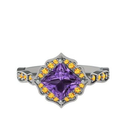 Ametist ve sitrin 14 ayar beyaz altın yüzük