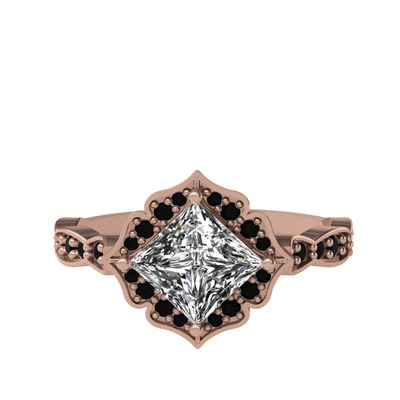 Beyaz zirkon ve siyah zirkon 18 ayar rose altın yüzük