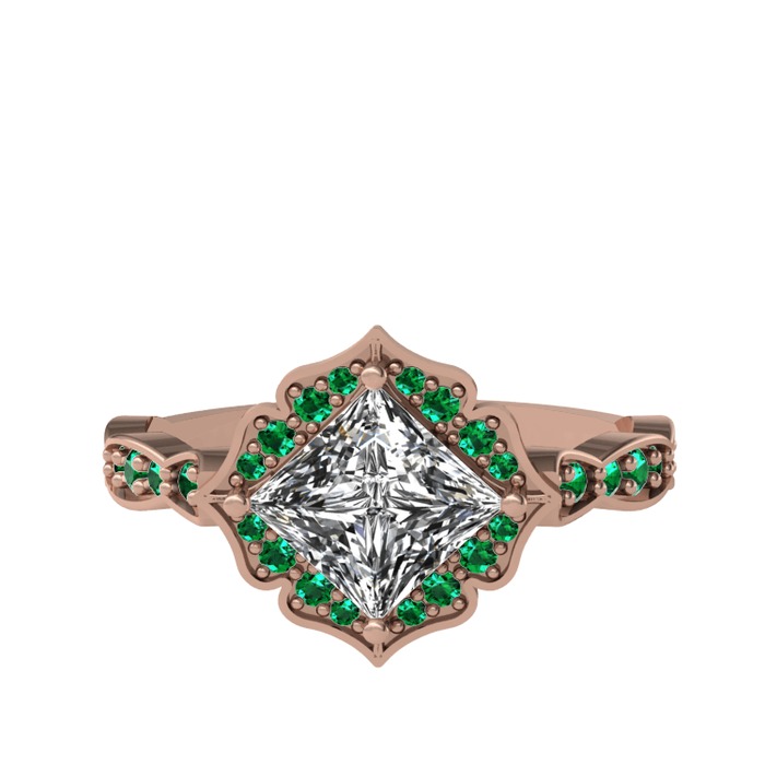 Beyaz zirkon ve yeşil kuvars 14 ayar rose altın yüzük