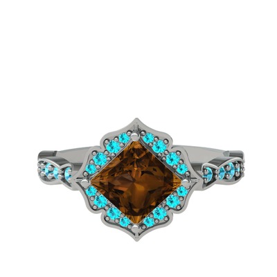 Dumanlı kuvars ve akuamarin 925 ayar gümüş yüzük
