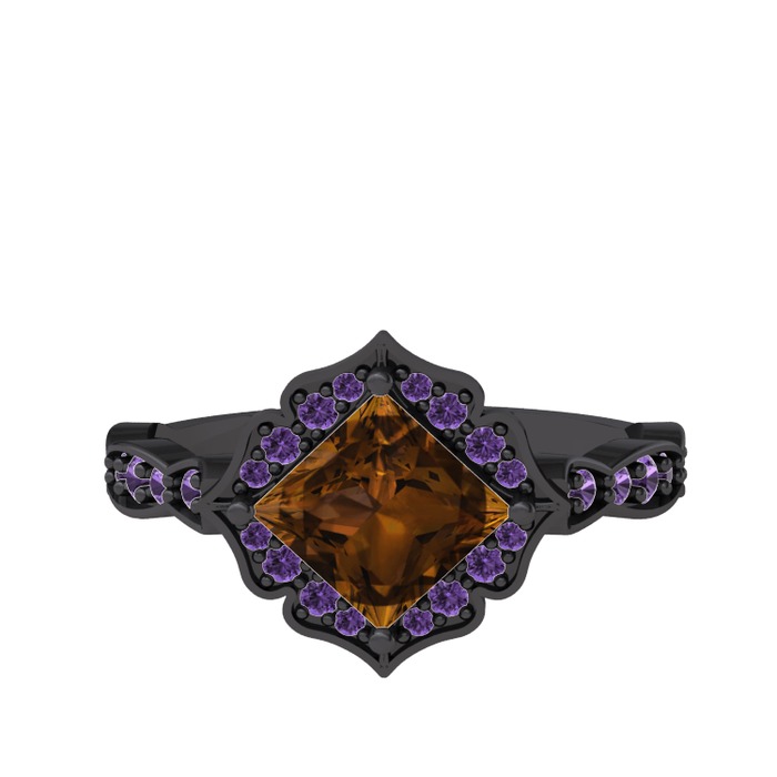 Dumanlı kuvars ve ametist 925 ayar siyah rodyum kaplama gümüş yüzük