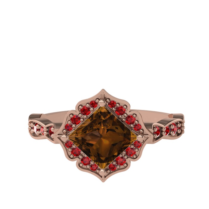 Dumanlı kuvars ve garnet 18 ayar rose altın yüzük