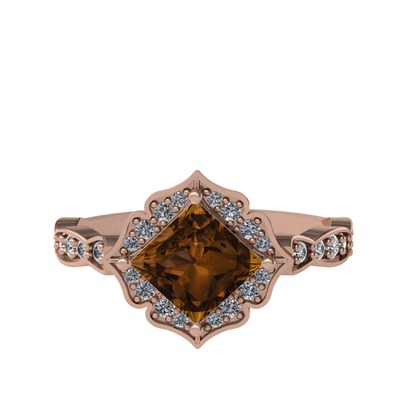 Dumanlı kuvars ve pırlanta 14 ayar rose altın yüzük (0.775 karat)