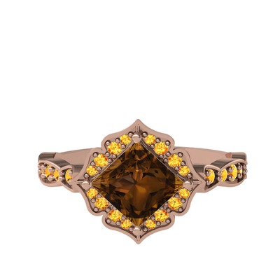 Dumanlı kuvars ve sitrin 18 ayar rose altın yüzük