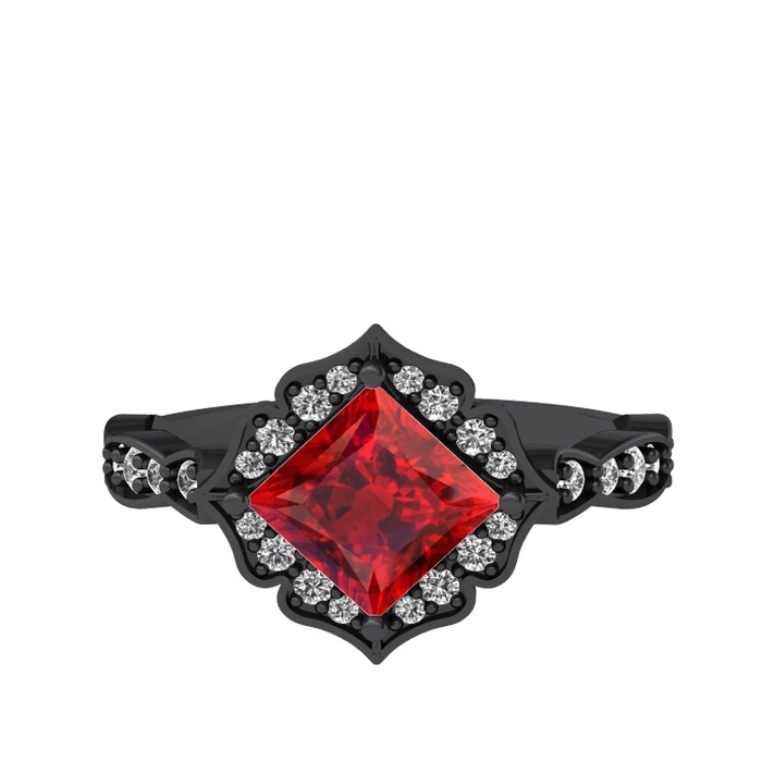 Garnet ve beyaz zirkon 925 ayar siyah rodyum kaplama gümüş yüzük