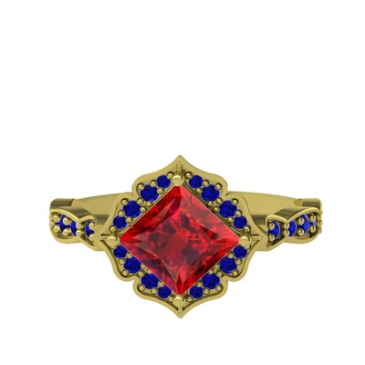 Garnet ve lab safir 925 ayar altın kaplama gümüş yüzük