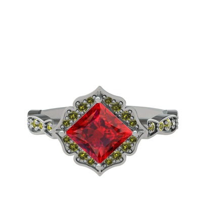 Garnet ve peridot 14 ayar beyaz altın yüzük