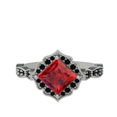 Garnet ve siyah zirkon 8 ayar beyaz altın yüzük