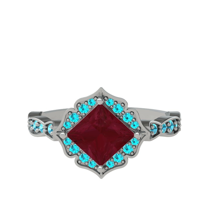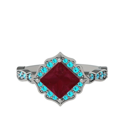 Kök yakut ve akuamarin 18 ayar beyaz altın yüzük