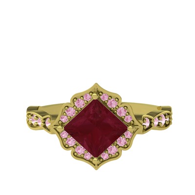 Kök yakut ve pembe kuvars 14 ayar altın yüzük