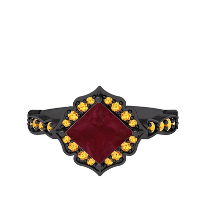 Kök yakut ve sitrin 925 ayar siyah rodyum kaplama gümüş yüzük