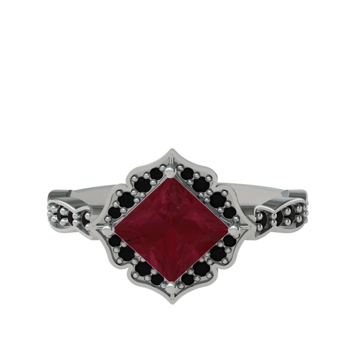 Kök yakut ve siyah zirkon 18 ayar beyaz altın yüzük