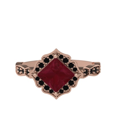 Kök yakut ve siyah zirkon 925 ayar rose altın kaplama gümüş yüzük