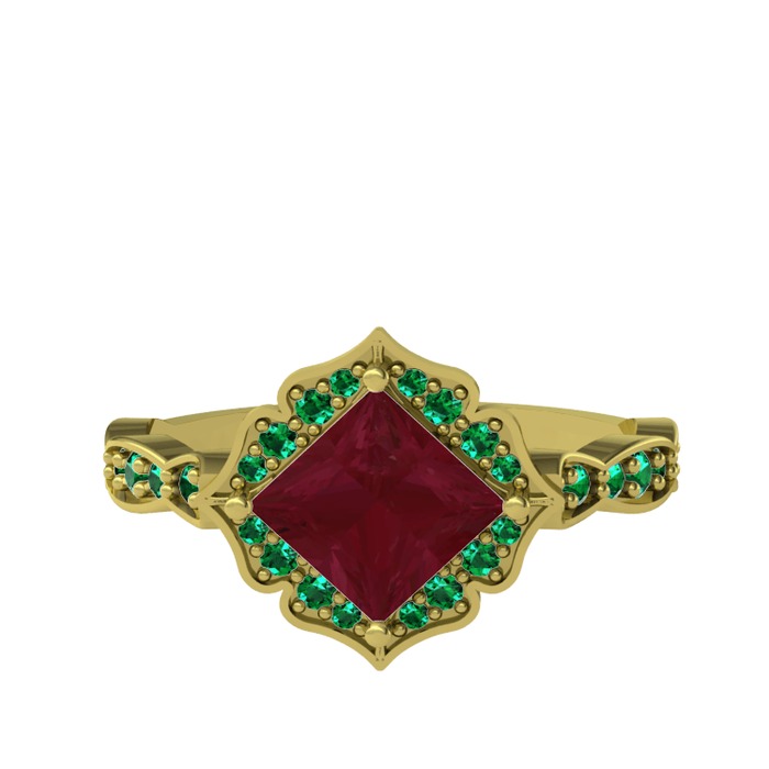 Kök yakut ve yeşil kuvars 18 ayar altın yüzük
