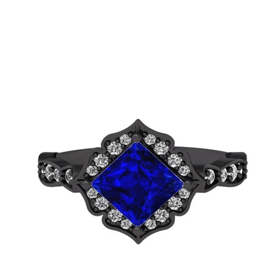 Lab safir ve beyaz zirkon 925 ayar siyah rodyum kaplama gümüş yüzük