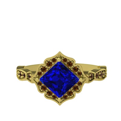 Lab safir ve dumanlı kuvars 8 ayar altın yüzük