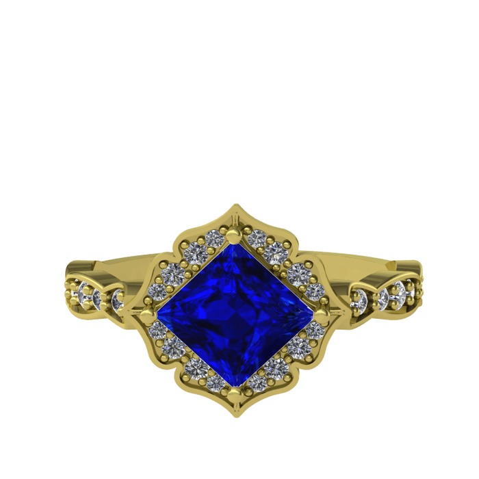 Lab safir ve pırlanta 18 ayar altın yüzük (0.775 karat)