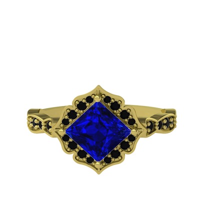 Lab safir ve siyah zirkon 8 ayar altın yüzük