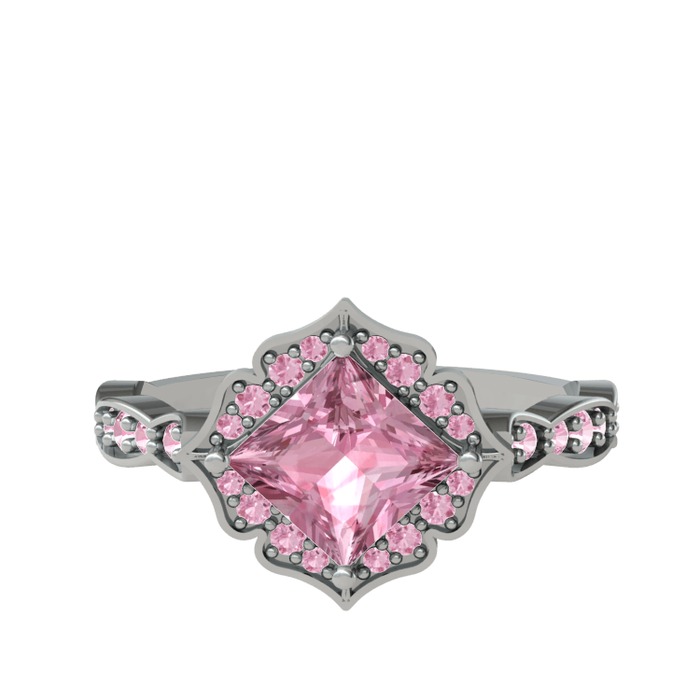 Pembe kuvars 8 ayar beyaz altın yüzük