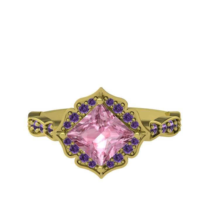 Pembe kuvars ve ametist 925 ayar altın kaplama gümüş yüzük