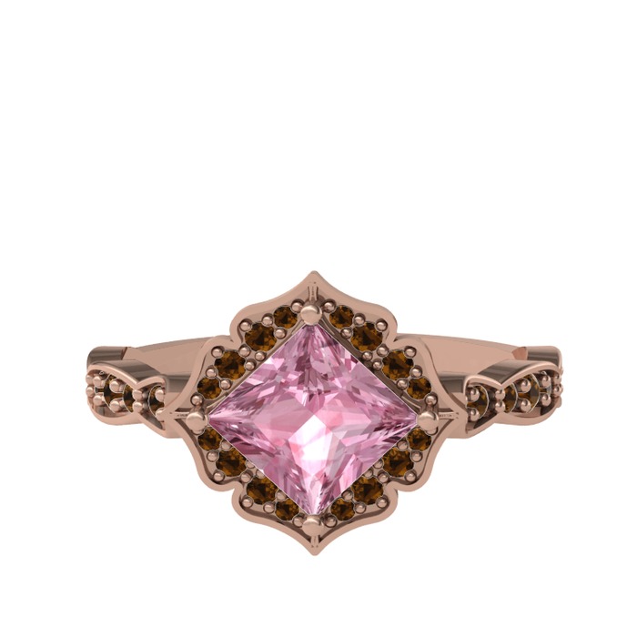 Pembe kuvars ve dumanlı kuvars 14 ayar rose altın yüzük
