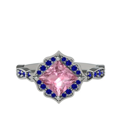 Pembe kuvars ve lab safir 14 ayar beyaz altın yüzük