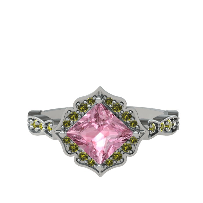 Pembe kuvars ve peridot 14 ayar beyaz altın yüzük