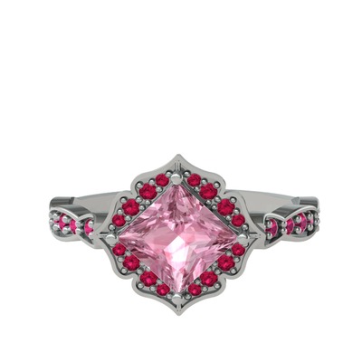 Pembe kuvars ve rodolit garnet 8 ayar beyaz altın yüzük