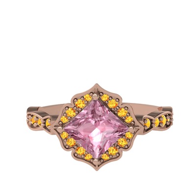 Pembe kuvars ve sitrin 18 ayar rose altın yüzük