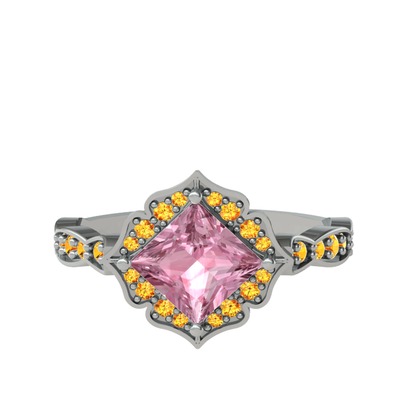 Pembe kuvars ve sitrin 925 ayar gümüş yüzük