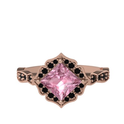 Pembe kuvars ve siyah zirkon 18 ayar rose altın yüzük