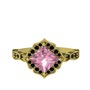 Pembe kuvars ve siyah zirkon 925 ayar altın kaplama gümüş yüzük