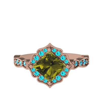 Peridot ve akuamarin 18 ayar rose altın yüzük