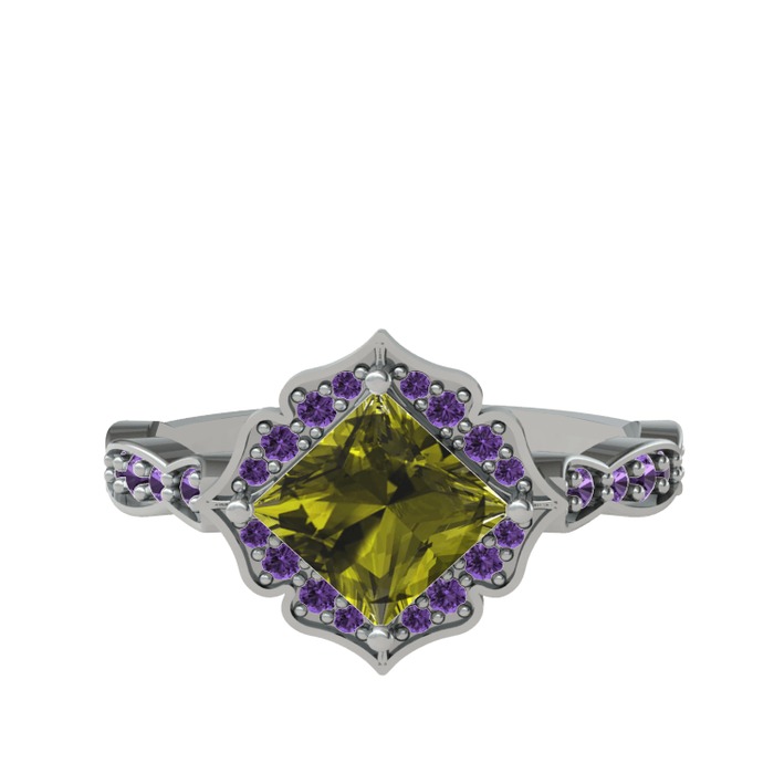 Peridot ve ametist 8 ayar beyaz altın yüzük