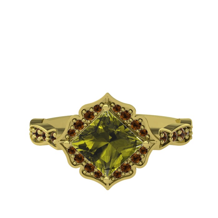 Peridot ve dumanlı kuvars 925 ayar altın kaplama gümüş yüzük